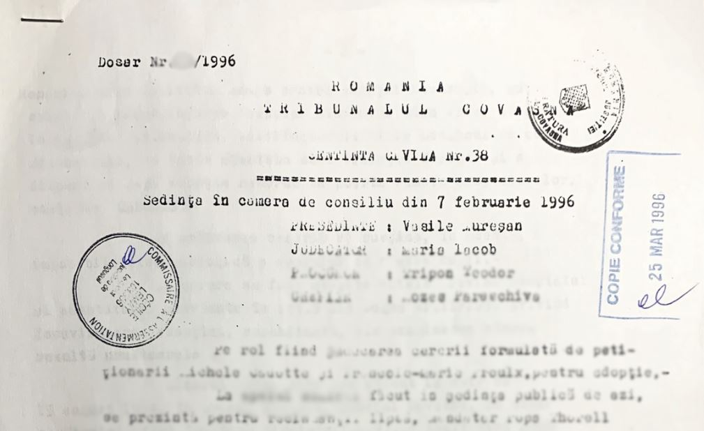 The client sought to locate their birth mother after an adoption finalized in the 1990s, originally processed in a rural region of Covasna County, Romania.