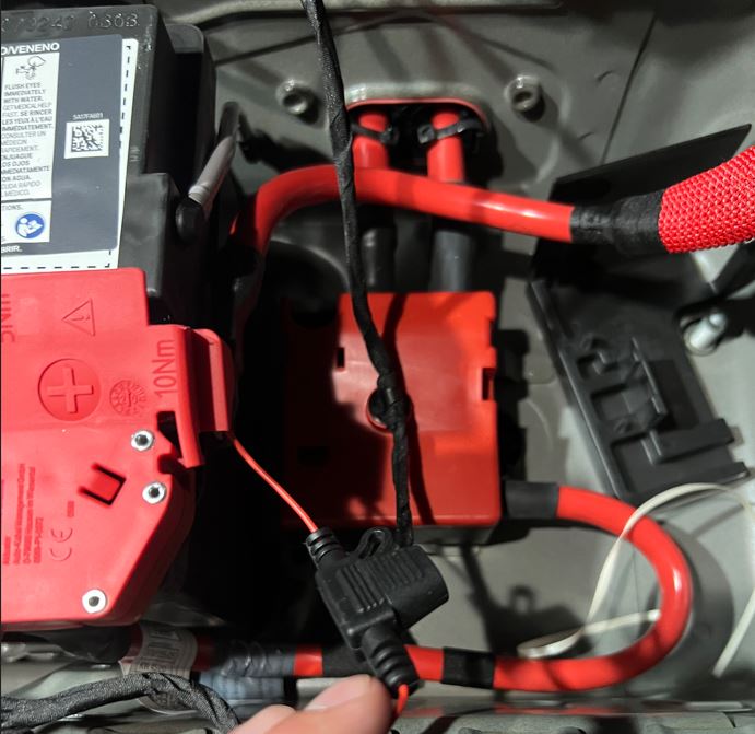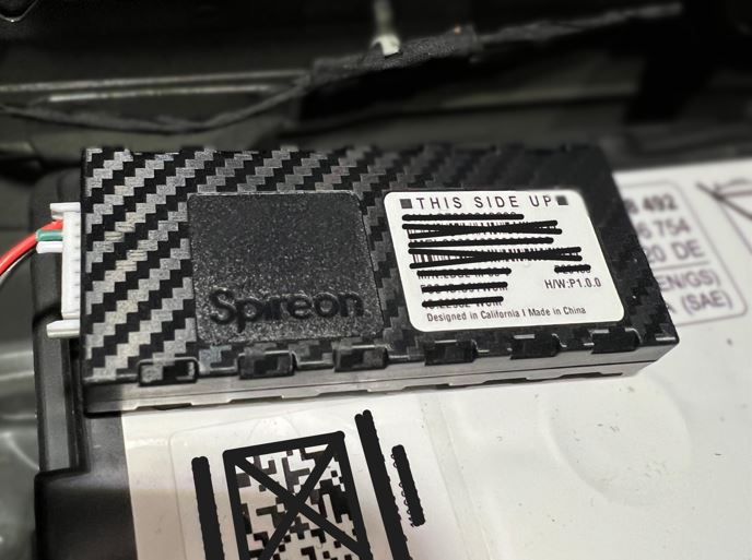 A Spireon GPS tracker was located, hardwired to the BMW M440i’s battery and hidden within the trunk lining.